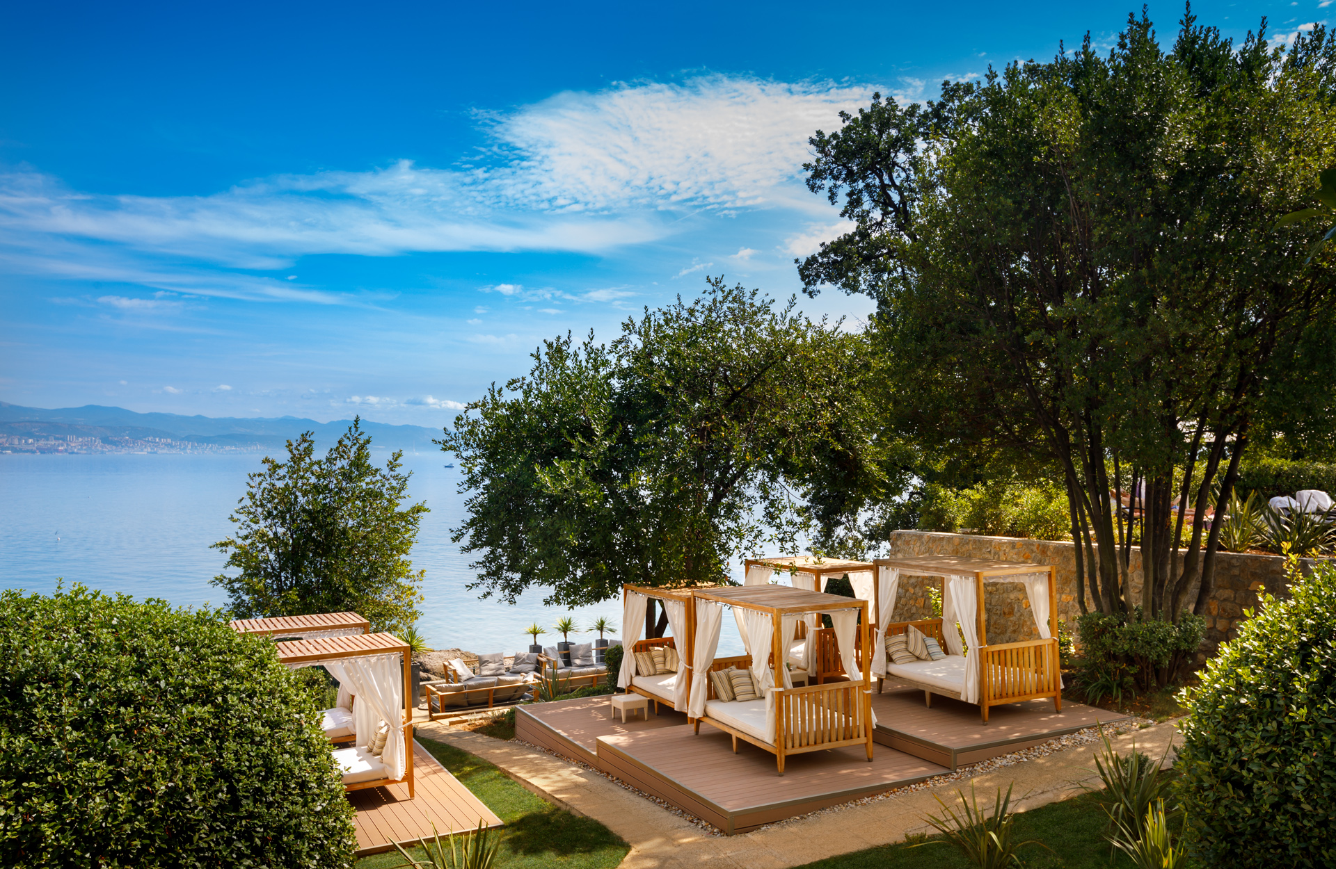 Hotel Ambasador nalazi se na centralnoj lokaciji u blizini središta Opatije, ali ipak je zadržao svoju privatnost. Smješten je iznad vlastitog kupališta i šetališta Lungomare koje se proteže obalom u dužini od 12 kilometara. Za vrijeme vrućih ljetnih dana, osvježenje ćete pronaći na plaži ili vanjskom bazenu, idealnim mjestima za uživanje na suncu.