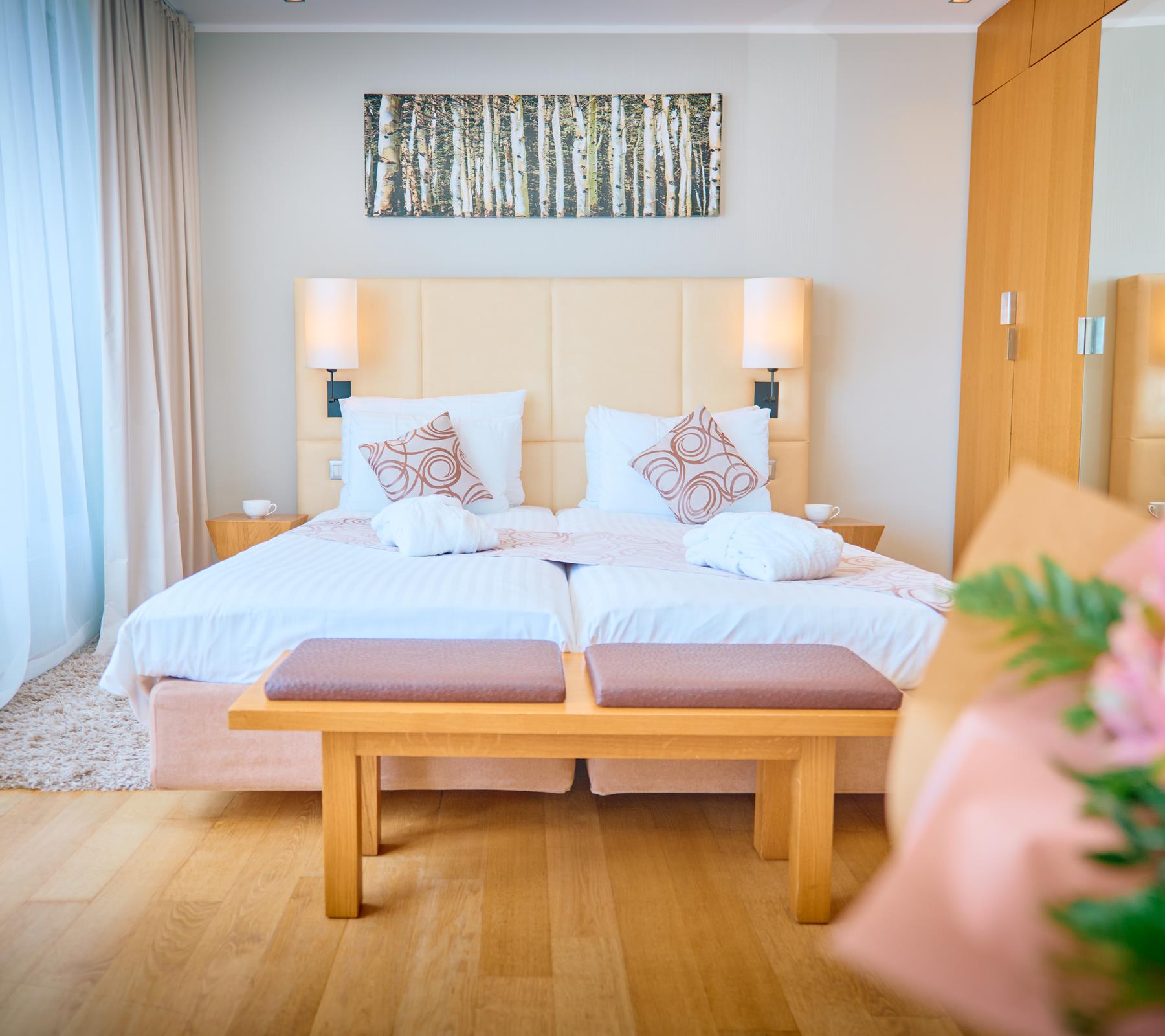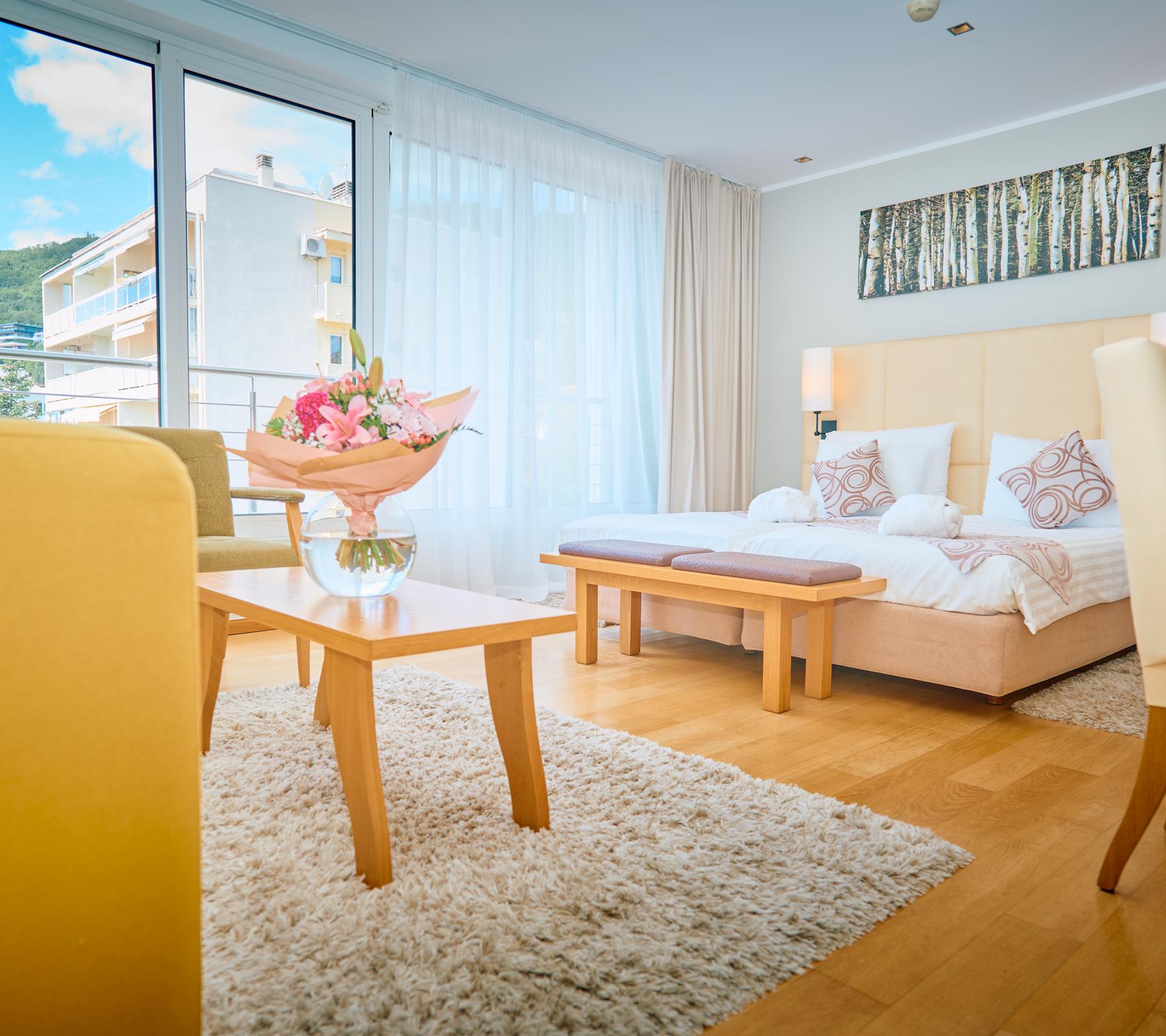 Sve sobe su klimatizirane i opremljene najsuvremenijom tehnologijom: TV, internet priključak, klima uređaj, minibar, sušilo za kosu, sef, kuhalo za vodu te ekskluzivnom Rituals kozmetikom.