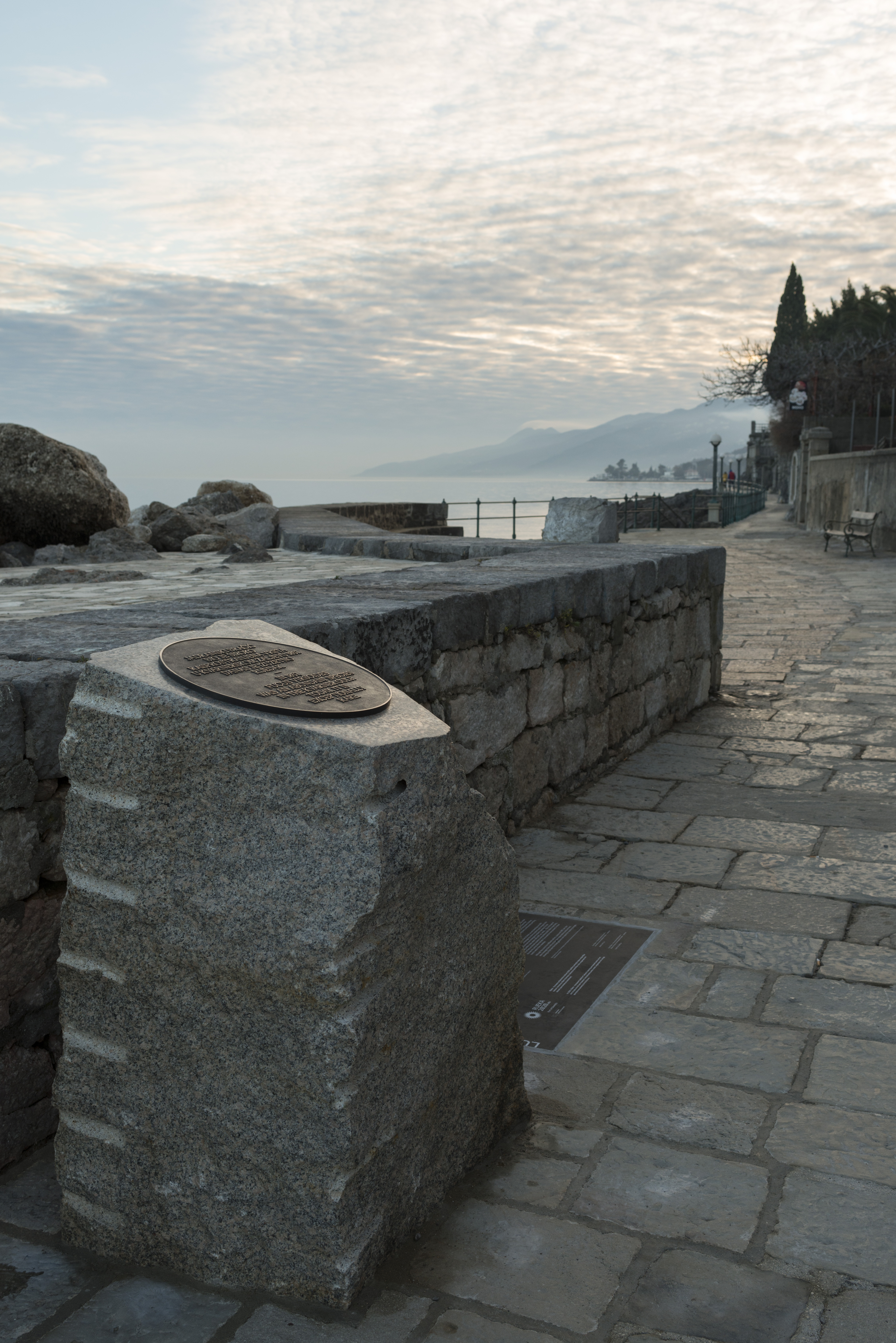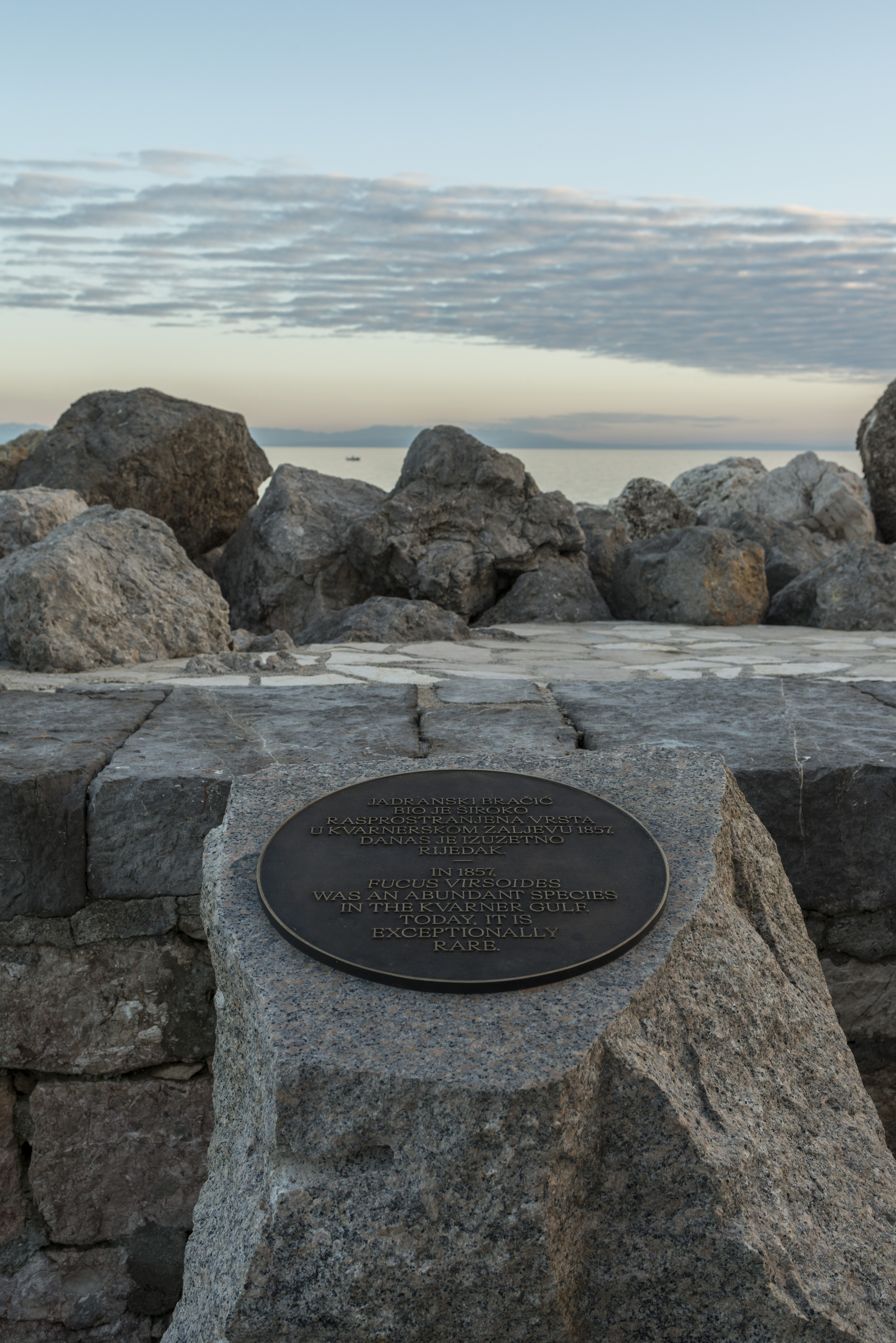 Jiři Kovanda, umjetnik svjetskoga glasa, odgovara na podmorski projekt Nike Laginja fokusirajući se na ekologiju i na društveni kontekst. U središtu vološćanske zajednice predstavlja svoju minimalističku instalaciju nadahnutu ovdašnjom prirodom i njezinom poviješću, točnije istaknutim hrvatskim znanstvenikom rođenim u Voloskom, Andrijom Mohorovičićem. Ova kamena skulptura odaje počast Jadranskom bračiću, danas rijetkoj i ugroženoj vrsti smeđe alge, koja živi samo u čistome moru, a koje je bilo znatno više 1857. godine kada je rođen Andrija Mohorovičić.