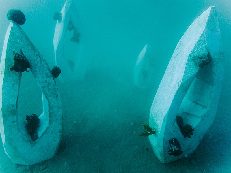 Odnos prirode i društva, odnos dviju umjetničkih instalacija – ispod i iznad mora.