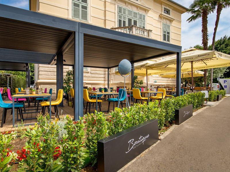 Intiman i skladno uređen prostor na izvrsnoj lokaciji pokraj parka i kupališta Slatina, restoran Boutique u svojoj ponudi ima doista širok raspon gastronomskih delicija za svaki ukus – od ribljih i mesnih specijaliteta do pizze i raznih tjestenina. Unikatan sklad suvremenog i tradicionalnog ovaj novootvoreni restoran može zahvaliti činjenici da se nalazi u jednoj od najslavnijih povijesnih zgrada u Opatiji, Villi Keglevich, koja je pripadala jednom od istaknutijih pripadnika starog hrvatskog plemstva.