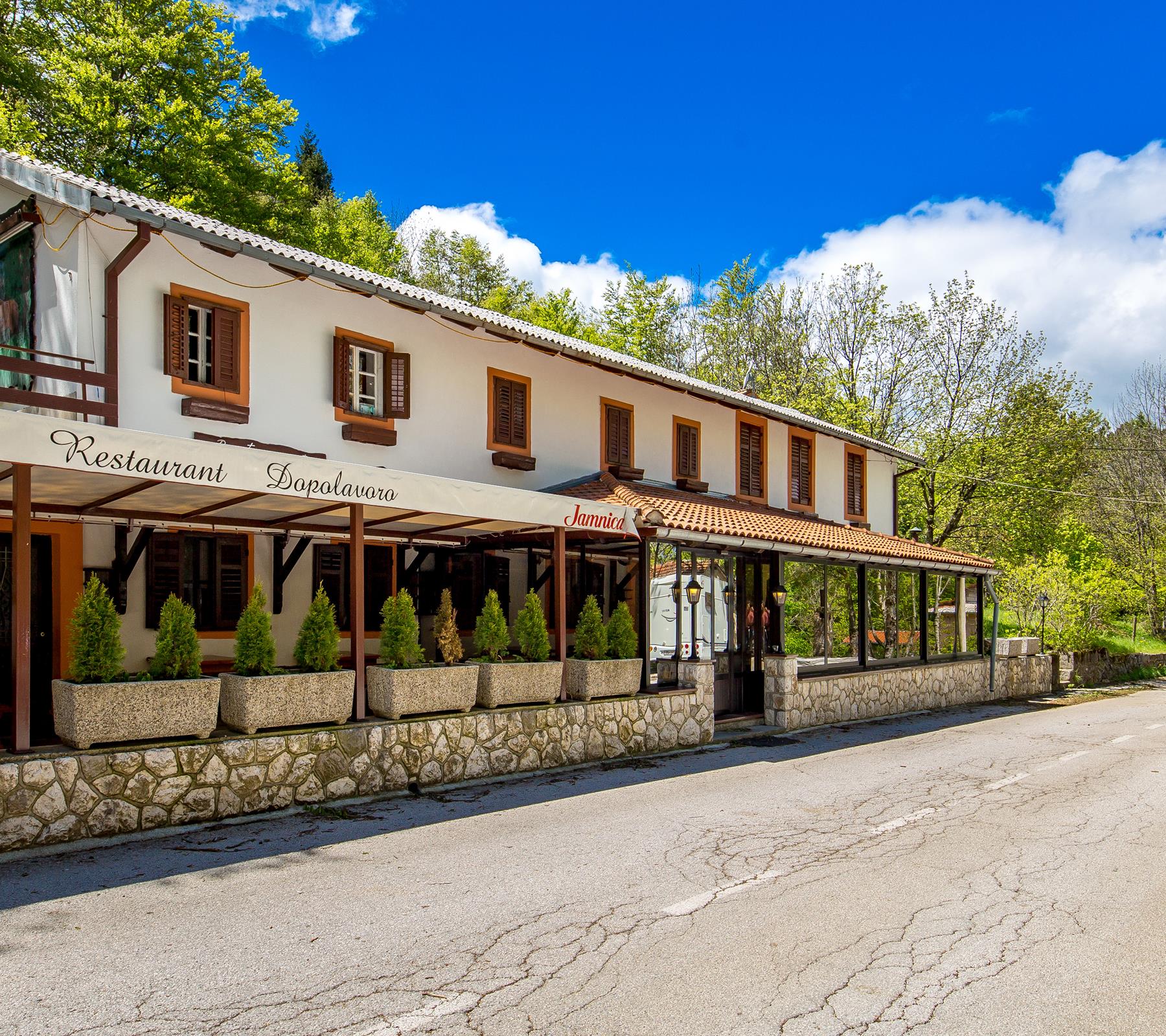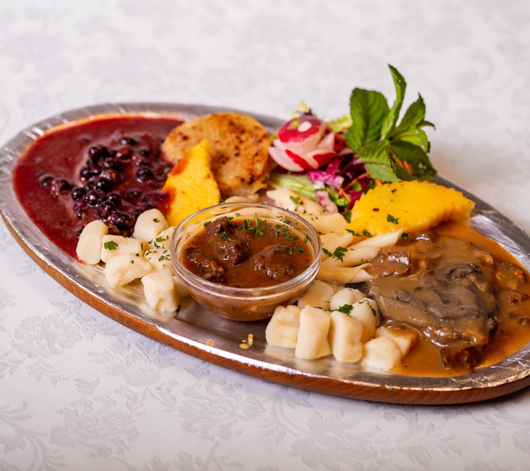 Specijaliteti: Odrezak od jelena u borovicama, fritaja sa šparogama i pršutom, pohane žabe.